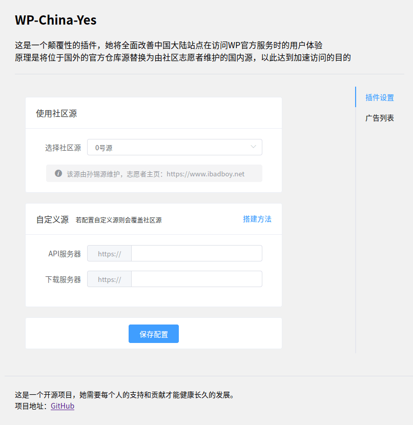 特别强调:该插件由【坏蛋的博客】开发并于Github开源。项目地址:https://github.com/sunxiyuan/wp-china-yes